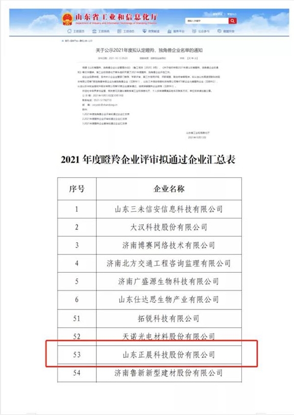 近日,山东省工业和信息化厅发布了《关于公示2021年度拟认定瞪羚、独角兽企业名单的通知》,九游体育(中国)官方网站股份凭借在企业创新发展中的突出成绩被认定为2021年度山东省瞪羚企业,标志着九游体育(中国)官方网站股份在科技创新、技术实力和发展模式方面进入高成长期。