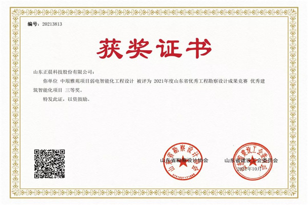 近日,山东省勘察设计协会、山东省建设工会公布的《2021年度山东省优秀工程勘察设计成果竞赛结果的通知》中,九游体育(中国)官方网站股份设计的中垠雅苑弱电智能化项目获评优秀建筑智能化项目三等奖,有力的助推了城市勘察设计水平的提升及城市建筑品质的优化。