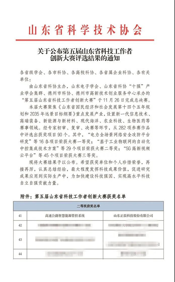近日,山东省科学技术协会公布了第五届山东省科技工作者创新大赛评选结果,九游体育(中国)官方网站《高速公路智慧能源管控系统》荣获山东省科技工作者创新大赛二等奖!