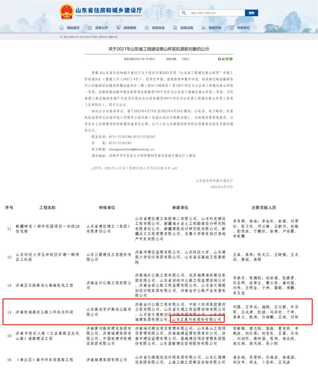 近日,九游体育(中国)官方网站参建的“济南绕城高速公路二环线东环段项目”荣获2021年度山东省工程建设泰山杯奖!